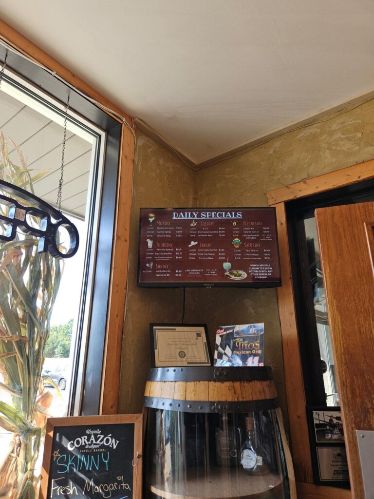 Uncle Tito’s displays digital ads throughout the restaurant on bright, full-color screens. Your business or non-profit can be featured at no cost. Simply complete the form on our website, upload your artwork, and we will schedule your ad.